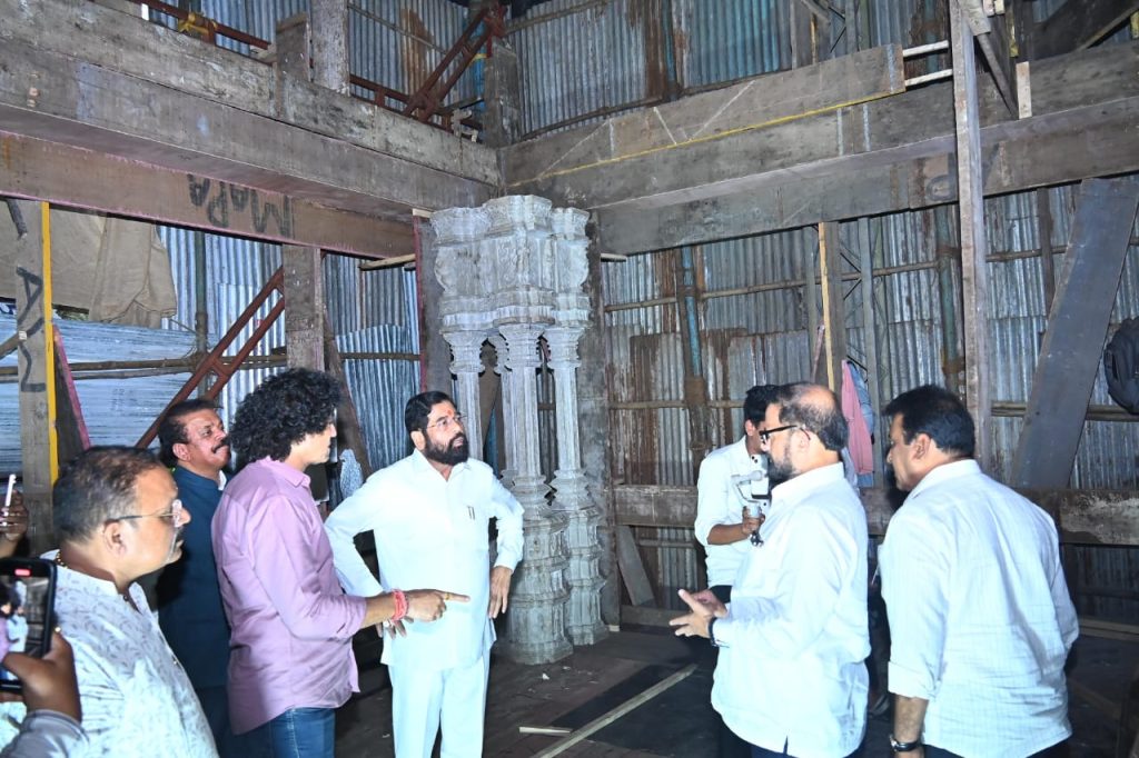 ठाण्यातील टेंभी नाका येथीलस्वर्गीय गुरुवर्य आनंद दिघे साहेबांच्या प्रेरणेतून सुरू झालेल्या श्री जय अंबे माँ सार्वजनिक धर्मादाय विश्वस्त संस्थेच्या वतीने आयोजित नवरात्रोत्सव काही दिवसांवर येऊन ठेपला आहे. यानिमित्ताने उपमुख्यमंत्री एकनाथ शिंदे यांनी ठाण्याची दुर्गेदुर्गेश्वरी म्हणून ओळखल्या जाणाऱ्या देवीसाठी तयार करण्यात येत असलेल्या देखाव्याच्या कामाची पाहणी केली.