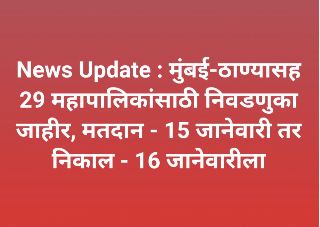 ताज्या बातम्या राजकारण मुंबई-ठाण्यासह 29 महापालिकांसाठी निवडणुका जाहीर Thane Radio December 15, 2025 1 minute read मुंबई-ठाण्यासह 29 महापालिकांसाठी निवडणुका जाहीर, मतदान – 15 जानेवारी तरनिकाल – 16 जानेवारीला Please Share and like us: Post navigation Previous: मुंबई-ठाण्यासह 29 महापालिकांसाठी निवडणुका जाहीर Leave a Reply Cancel replyYour email address will not be published. Required fields are marked *Comment * Name * Email * Website Save my name, email, and website in this browser for the next time I comment.