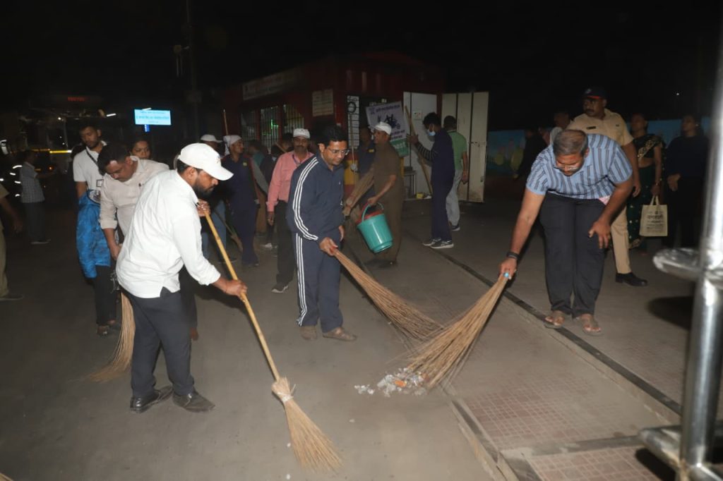 ठाणे (05) : ठाणे महानगरपालिकेच्या वतीने रेल्वे स्थानक परिसरात भव्य ‘डीप क्लीन ड्राइव्ह’ घेण्यात आला. आगामी स्वच्छ सर्वेक्षणच्या पार्श्वभूमीवर महापालिका आयुक्त सौरभ राव यांच्या मार्गदर्शनाखाली ही विशेष स्वच्छता मोहीम राबविण्यात येत आहे. शुक्रवारी रात्री राबविण्यात आल्यामुळे शनिवारी पहाटे रेल्वेस्थानकामध्ये प्रवेश केलेल्या प्रवाशांनी परिसर स्वच्छतेबाबत ठाणे महापालिकेचे कौतुक केले.