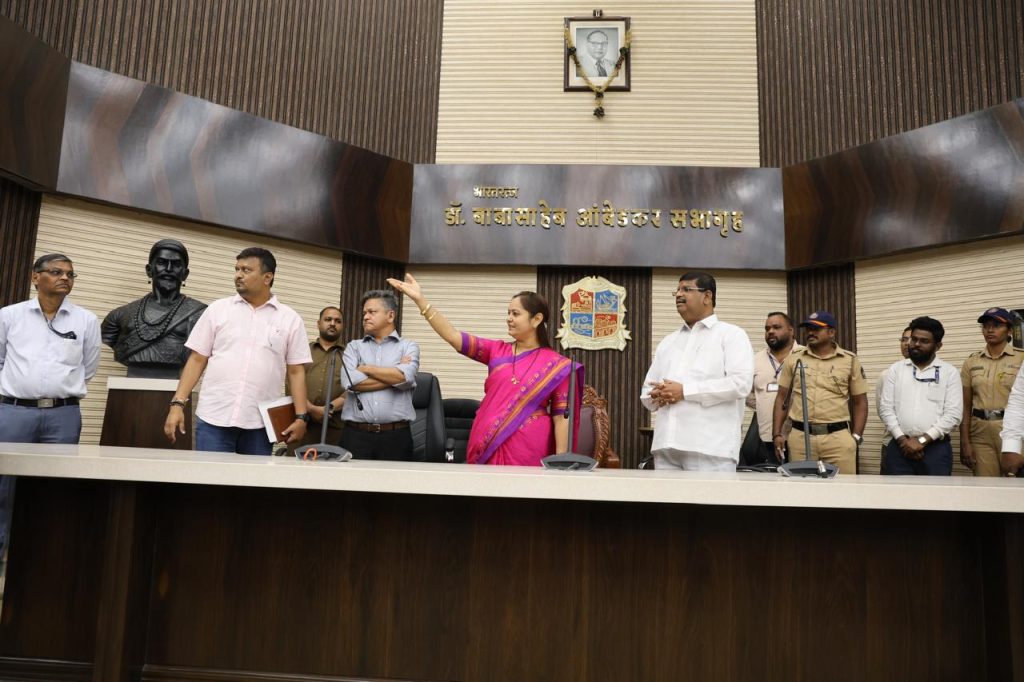 ठाणे (17) : ठाणे महानगरपालिका ची सर्वसाधारण सभा येत्या 20 फेब्रुवारी 2026 रोजी आयोजित केली आहे. या पार्श्वभूमीवर महापौर शर्मिला रोहित पिंपळोलकर यांनी आज महासभेच्या सभागृहाची प्रत्यक्ष पाहणी करून तयारीचा आढावा घेतला.